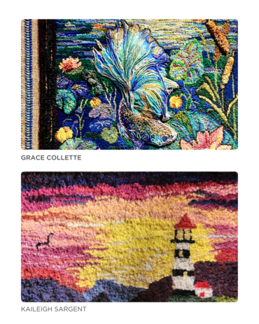 This fiber-based rug hooking apprenticeship pairs mentor artist Grace Collette with apprentice Kaileigh Sargent for 100 hours of one-on-one studio training in Raymond, New Hampshire. Throughout their time together, Kaileigh will expand her knowledge of design principles, such as color planning and composition, while developing and applying these skills to her first rug design. As she progresses, she will explore various dyeing techniques, along with learning new textile skills like creative stitches, punch needle, and embroidery. The apprenticeship will also cover finishing techniques, including needle felting and embellishing with beads and novelty yarns, culminating in the submission of three pieces for jury consideration into the League of NH Craftsmen.