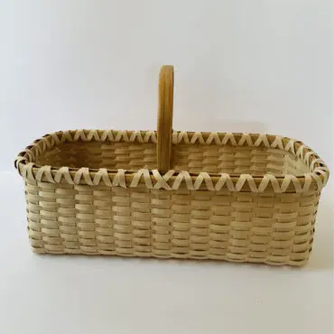Spend the day weaving this beautiful and functional berry picking basket, which measures 11 inches long by 5 inches wide by 4 inches deep. Expert basket maker Alice Ogden will guide you through the process from start to finish, allowing you to take home a beautiful completed basket of your own! All materials will be included, including New Hampshire black ash splints, whittled white oak rims, oak handles, and a wooden form to weave the basket over. Keep this gem of a basket for yourself, or make it as a beautiful and special handmade gift!