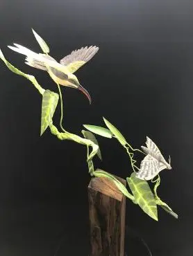 My wildfowl are mostly miniature in scale, set in their natural habitat so each piece is unique in capturing the essence of the bird in a brief moment in time. Through much study and research, the more detail and realism I can add to my work the better. Created from tupelo or bass wood, copper wire, sheet brass, acrylics, oils and casting epoxies for water. All types of mediums to put the viewer in a place and time with the natural world. |