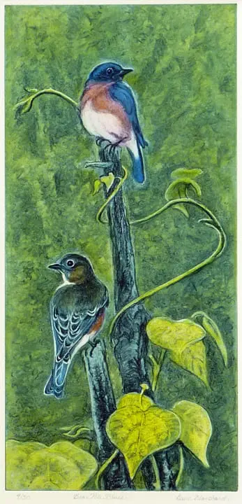 Dawn Blanchard lives on a small farm in Henniker, NH where her connection with nature is the source from which she muses, draws and creates prints. As a printmaker she works primarily in mezzotint and solar etching. Mezzotint is method of creating an image on copper plate using hand tools. Solar etching is creating an image on light sensitive polymer plate using a hand drawn or painted transparency. After the plates are complete and edition of prints is pulled on an etching press. Plates are hand inked and pressed onto paper to create lasting works of art. Dawn has been a juried member of the League of New Hampshire Craftsmen since 1987 and is a member of the New Hampshire Art Association.