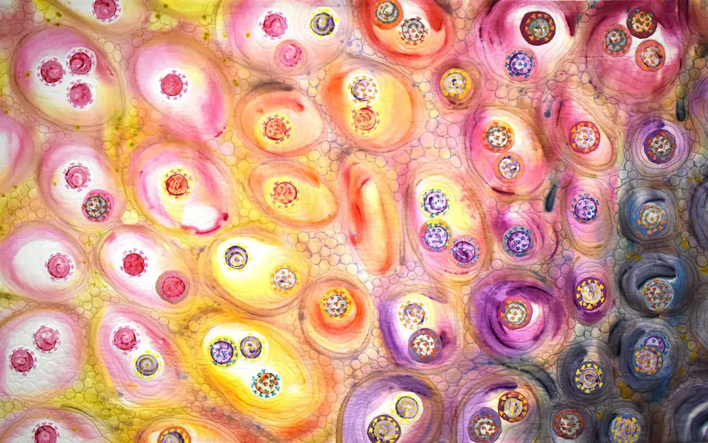 I explore this sense of awe through various outlets of creative expression. I make color-driven, layered fiber art and all sorts of painted works that use the Golden Ratio found in nature. Through this I size my work, blend my paint colors and decide the harmonies I will use. In the same way that we recognize ourselves in nature, my intention is that the result will feel familiar and therefore comforting because we see ourselves in it through those same proportions.