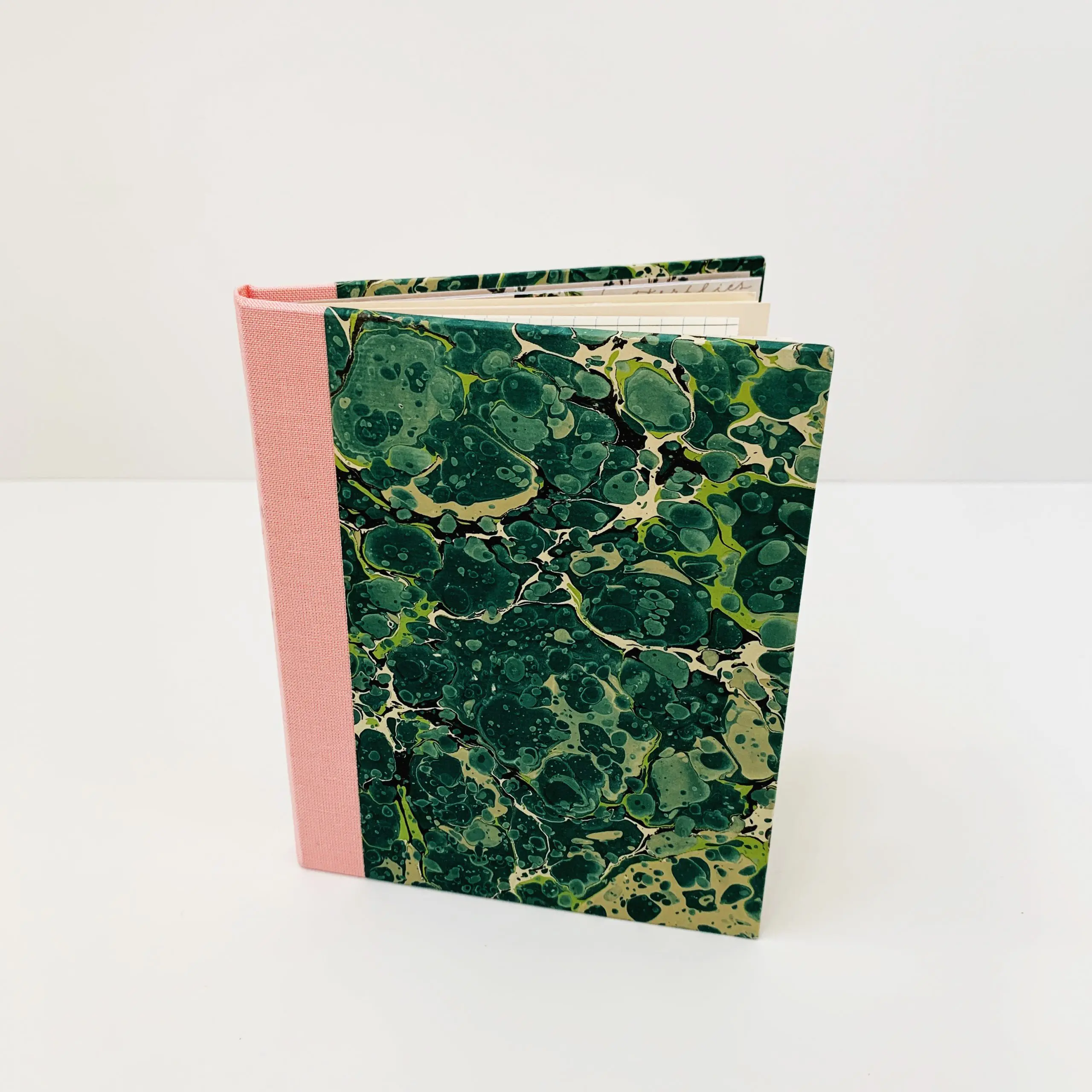 Joy Malcolm is a mixed media artist and bookbinder who specializes in making one-of-a-kind handmade books and journals. She received a degree in Studio Art from Wellesley College and is a former secondary art educator. It was in college through a position in the college library’s conservation facility that she was first introduced to bookbinding. She is thrilled to be able to combine her experiences in book conservation and art education with her love of many different art and craft mediums, including printmaking, painting, sewing, collage and more, to create the covers, pages and other elements that are included in her journals.