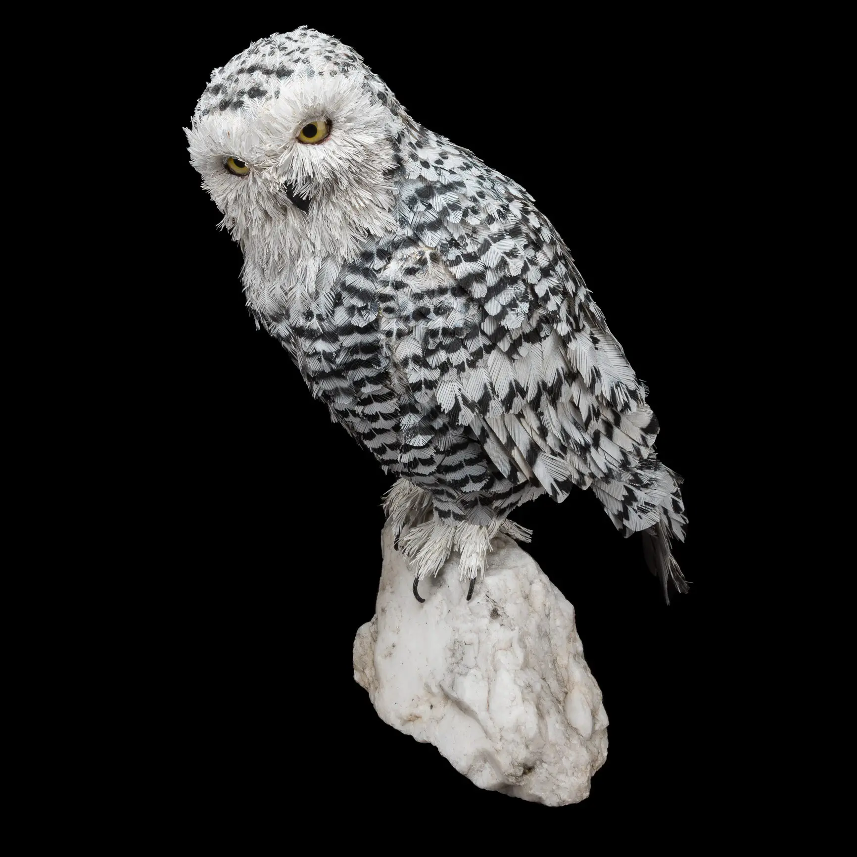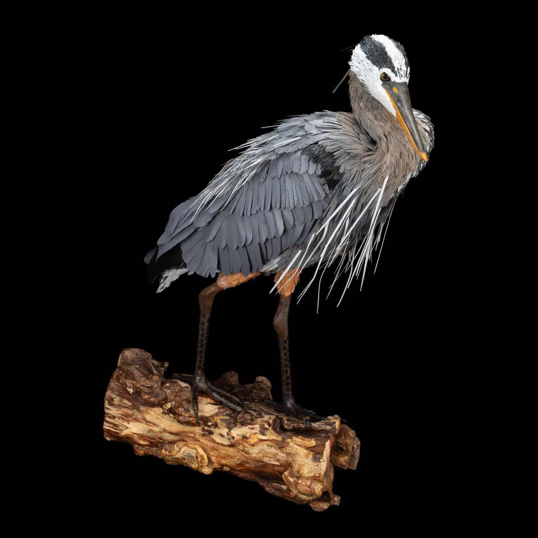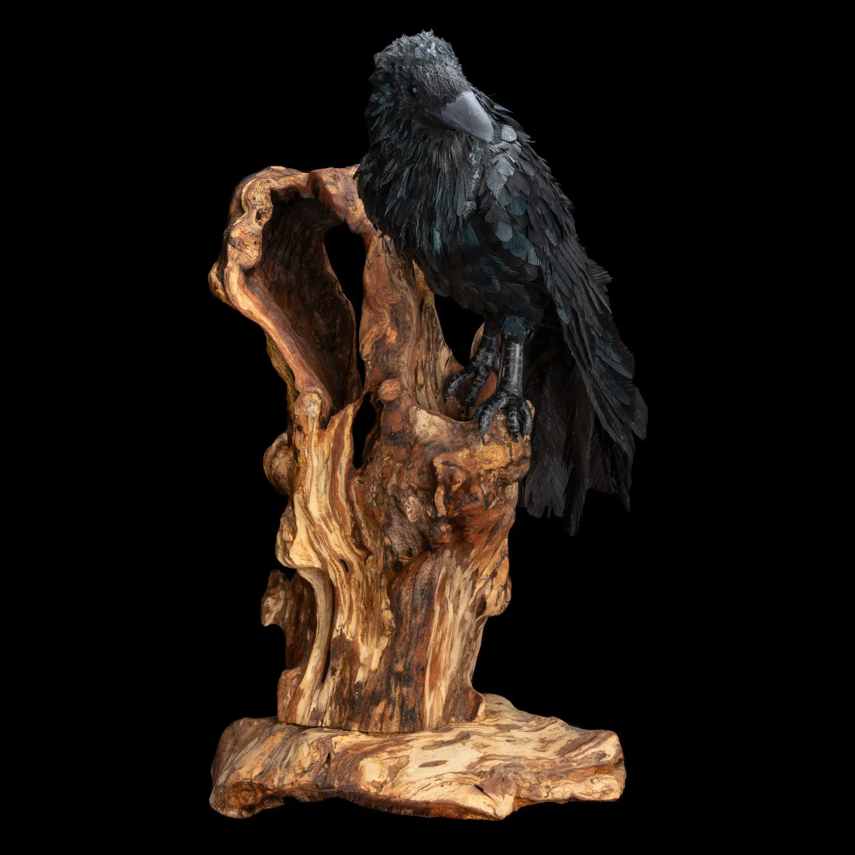 I have worked with various mediums over the years, but in the last 10 years I have settled into the wonderful challenge of working with used and scrapped items, mostly the innards of computers and electronics. This medium fits into my problem solving and engineering side and dovetails with the creative juices. Therefore, what you see is made up, mostly, of used parts and pieces.  Recently my main focus has been to take advantage of the acrylic sheets that are integral to monitor and TV screens. It is this plastic that is cut, shaped, painted and glued to make the feathers for my birds. The bodies are sculpted from rigid foam insulation and the bases are made from found wood.