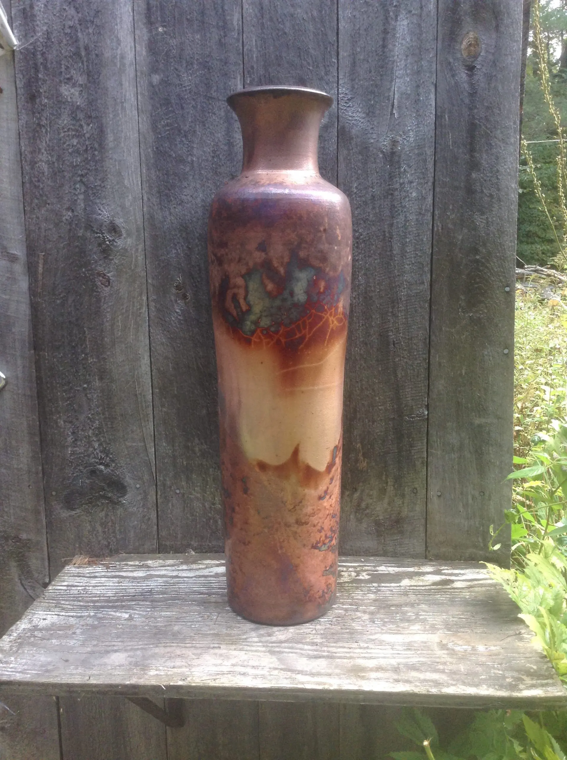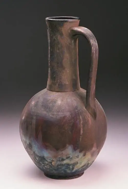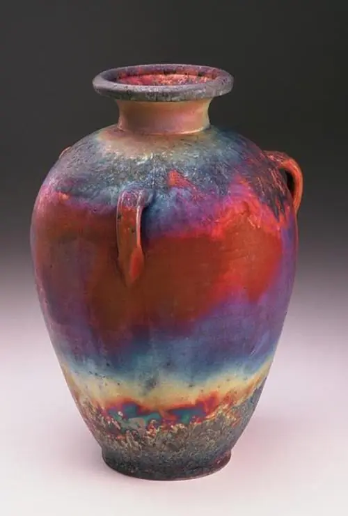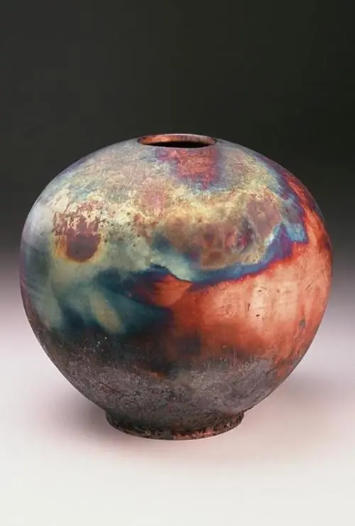 I began making pottery as stoneware at University of Vermont. Museum visits induced me to try porcelain, a translucent clay body which is almost glass. During the 70s raku became very popular, so I evolved into this method as it gave my forms more elegant shapes and spectacular colors.