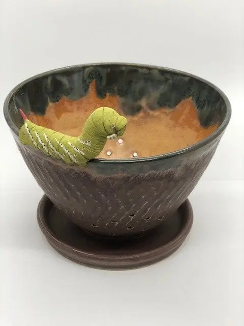 Richard (Rick) Roth is a self taught artist who has recently found the medium of clay. Rick’s love for the outdoors is clearly displayed in his work. His eye for details and ability to capture the personalities of his work is clearly shown in his little caterpillars, chipmunks, turtles, birds, sitting on the side of a bowl or vase, to simple mushrooms and lichens on his mugs, brings his pieces to life.