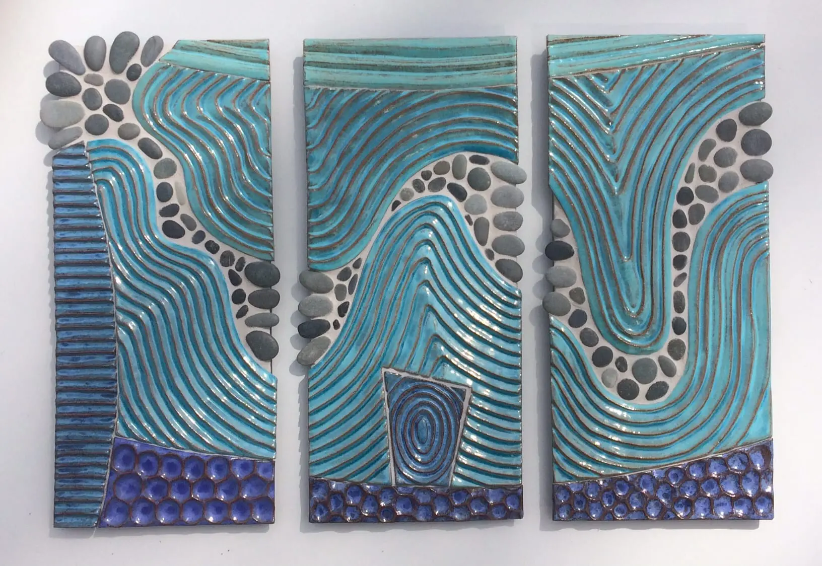 Sheilagh Flynn captures the dynamics of the earth’s textures and rhythms in mixed-media wall mosaics composed of clay and stone. She celebrates color with the intent to create harmony and contrast within the pieces to enhance the varied carved elements. The results are powerful and mindful works of art that invite visual and tactile engagement.