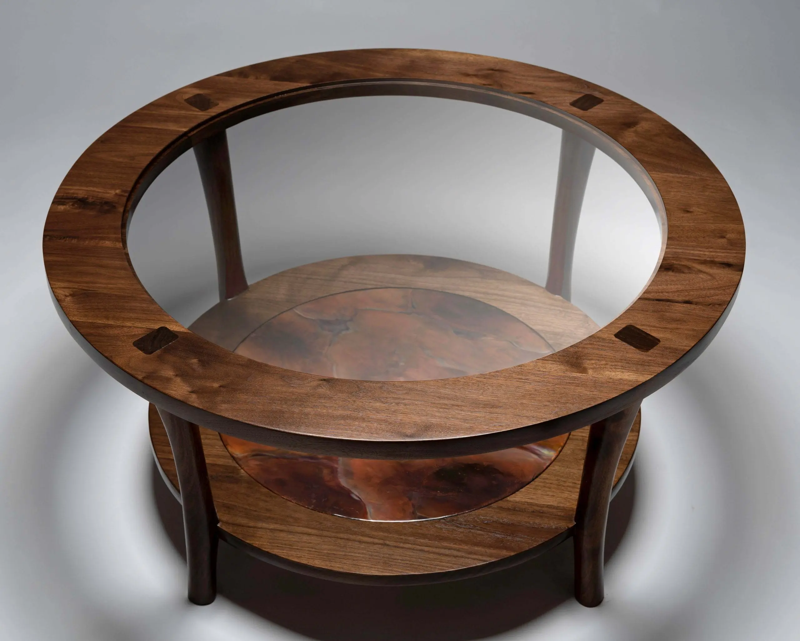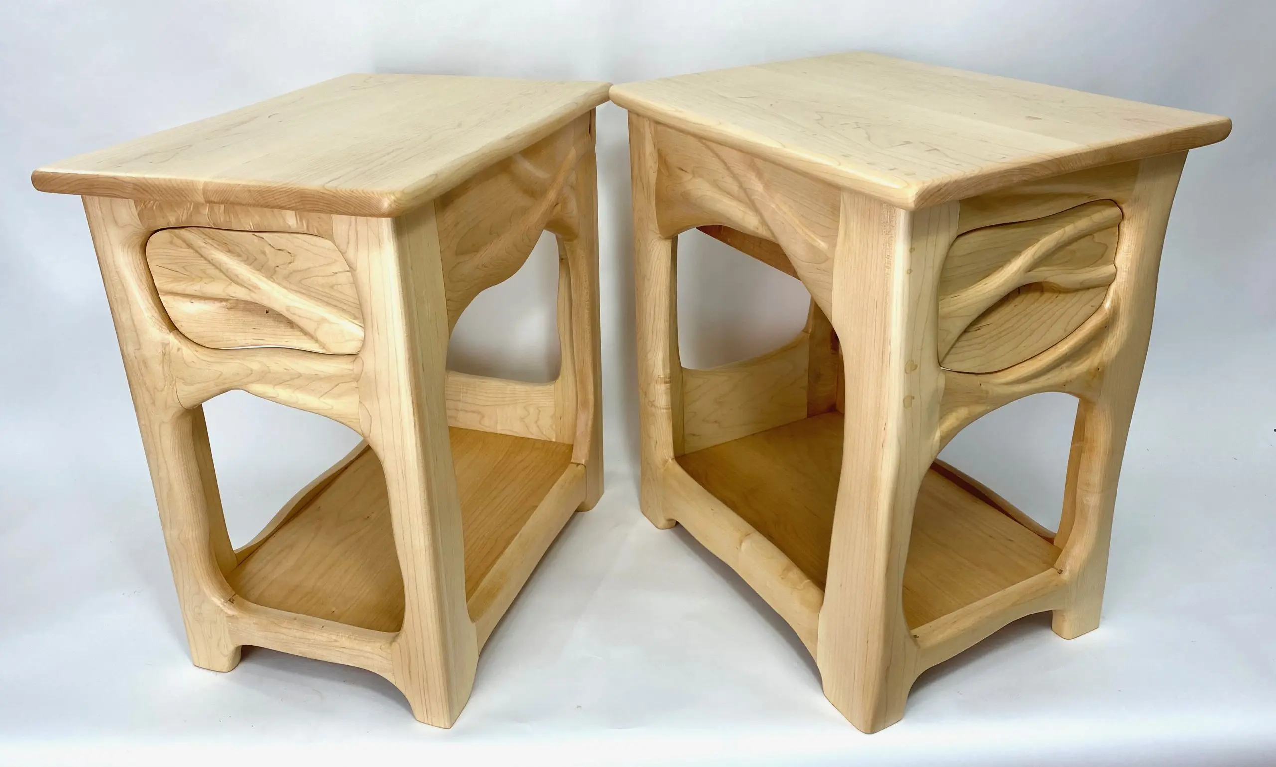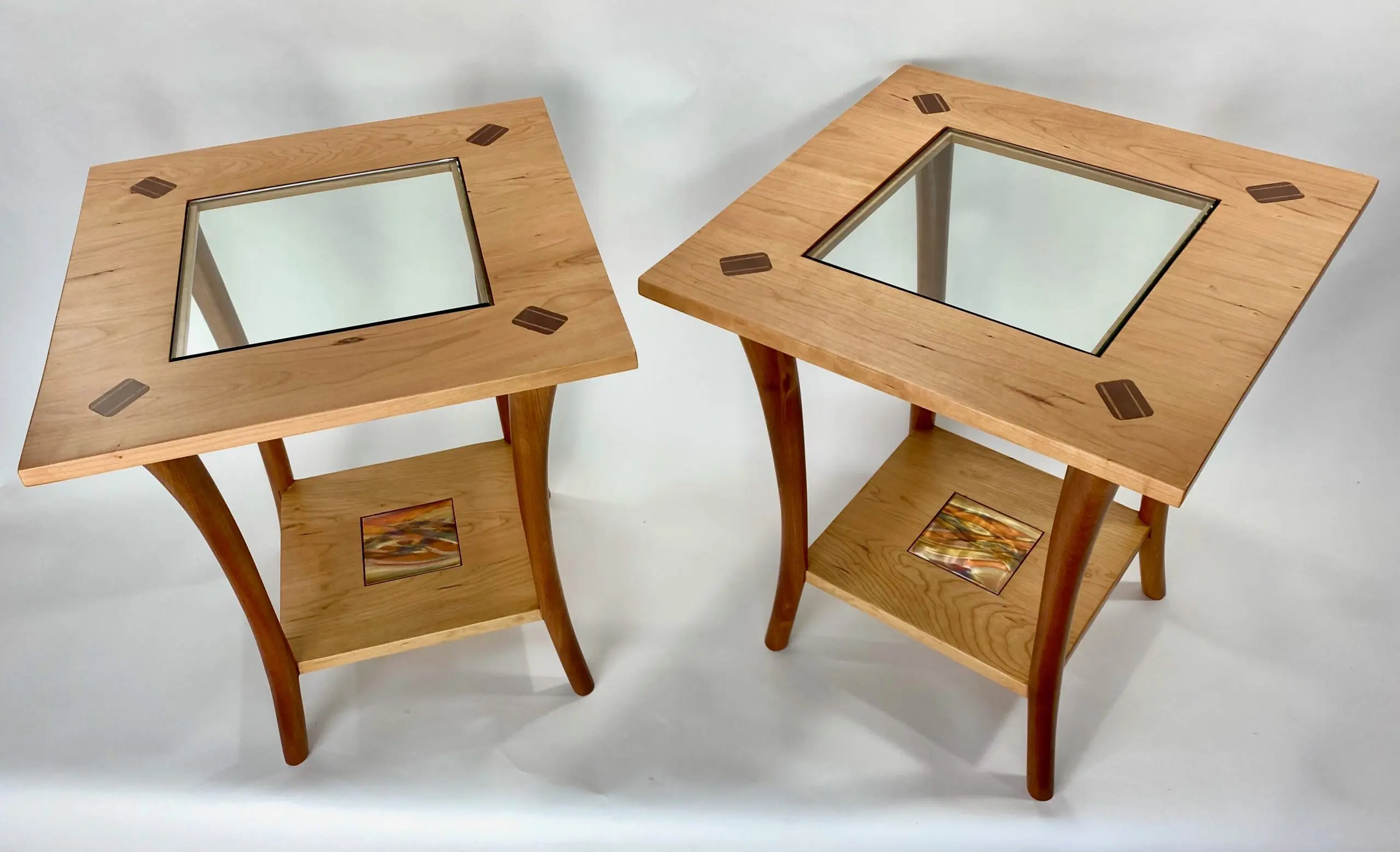 Steven Hayden is a sculptor and furniture maker working in New Hampshire’s lakes region. Steven is an artist and an engineer and his unique approach to blending seemingly disparate materials; wood, metal, clay, and glass; into functional and artistic pieces is the result of decades of practice and study. Seeing his work you will initially notice the artist’s interplay of crisp lines of forged steel with the warm tones of well finished hardwoods and sparkles of light and color from metallic glazed ceramic or glass. Looking closer will reveal the work of the engineer and craftsman. A combination of ages old traditional joinery and very modern techniques are used to bring the elements together.