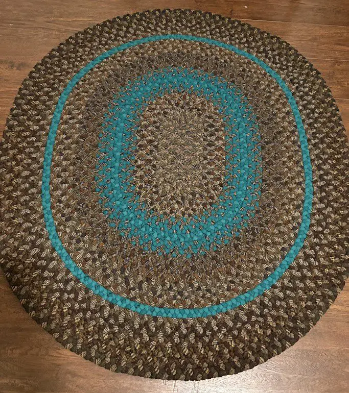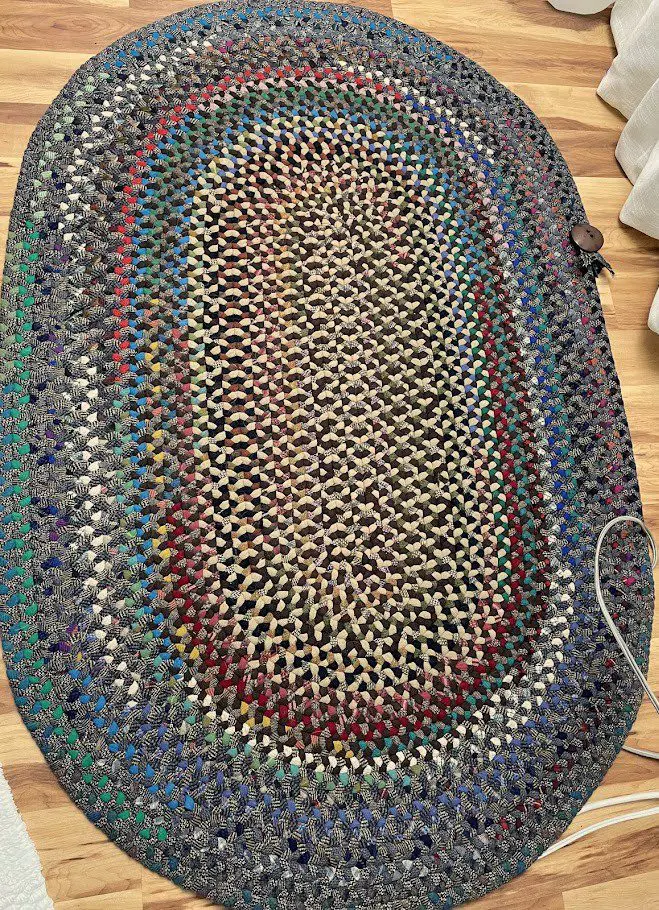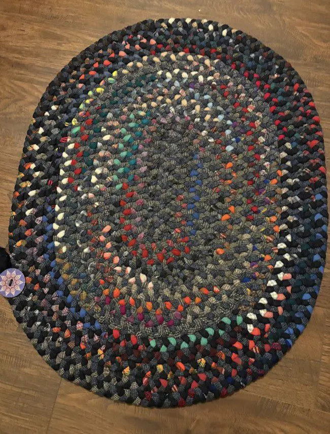 “I learned though weekly lessons at Isabelle Plant’s home – she would have us braid 3-4 inches stop, turn the braid over, and if there were any tweaks or puckers in the braid she would just say “take it out and do it again! As a result my rugs are reversible. I’ll always remember my first lesson after taking the braid out 5 times and starting again she said “now you can braid!””
