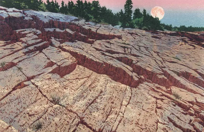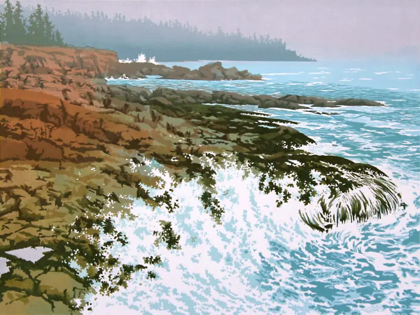 For printmaker William Hays, the idea of positive and negative is everything but black and white. He takes the simplicity of linoleum block printing to new levels with his beautiful and complex prints. His prints unfold into a layered mosaic of carved shapes, fitted into compositions conjuring a sense of mood and place dear to the artist’s heart. Hays prints transcend the limitations of a knife and a block of linoleum. Using traditional and innovative techniques of printing, his work stands apart in execution and design. Each archival print is an original work of art and is hand printed on 100% rag paper using oil-based inks. Each print is created in a strictly limited edition.