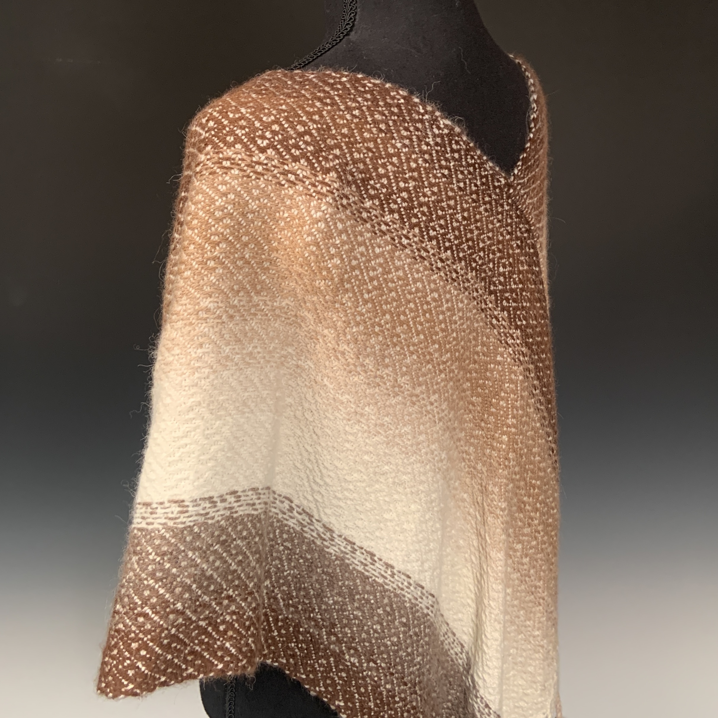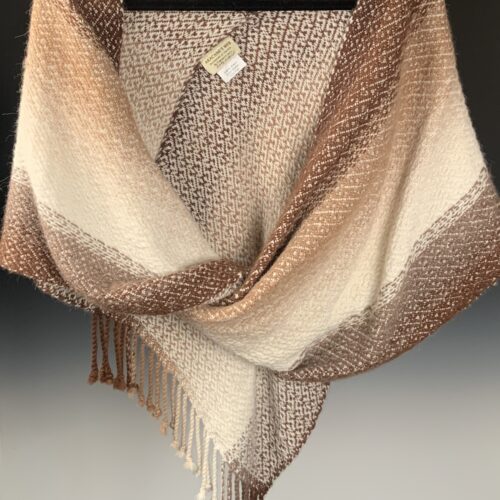 Handwoven infinity shawl made from 100% Alpaca fiber in natural shades of brown and white