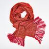 This bamboo scarf has a lovely mix of bright turquoise, deep blue, purple, pink, red, and white, woven together in a cozy, textured pattern. The long fringe adds a playful finish, while the fabric drapes with an inviting warmth—perfect for bundling up in cool weather with a touch of understated style. It measures 70″ long and 8.5″ wide.