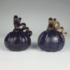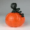 Yellow hand-blown glass pumpkin with a green stem by Jordana Korsen.
