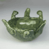 Hand-painted ceramic canister with painted flowers and a turtle figure on the lid by Loring Cheney.